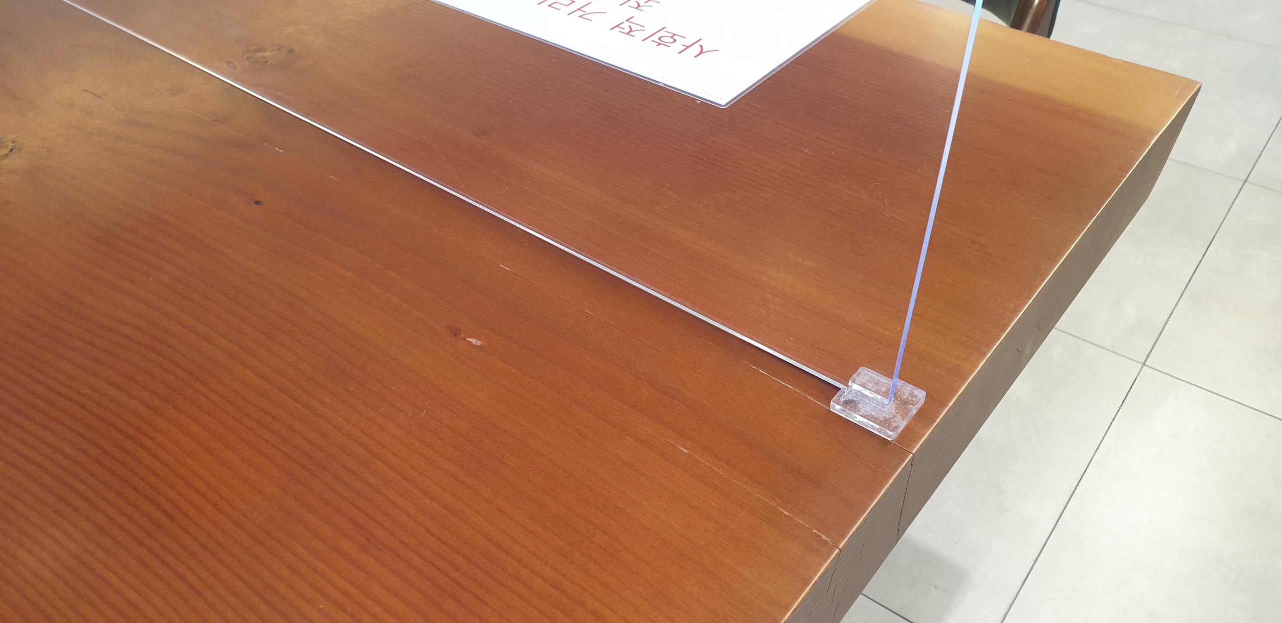 한국 에너지 기술평가원에서는 비말 차단 칸막이를 어느 정도 규격이상으로 설치하면 99.9% 이상 차단 효과가 있다는 연구결과 발표가 나왔습니다. 일부 업체에서 설치하는 비말 차단 칸막이는 효과가 없다는 것이다. 이번에 설치한 사례는 이를 충족하는 규격으로 설치하였습니다.