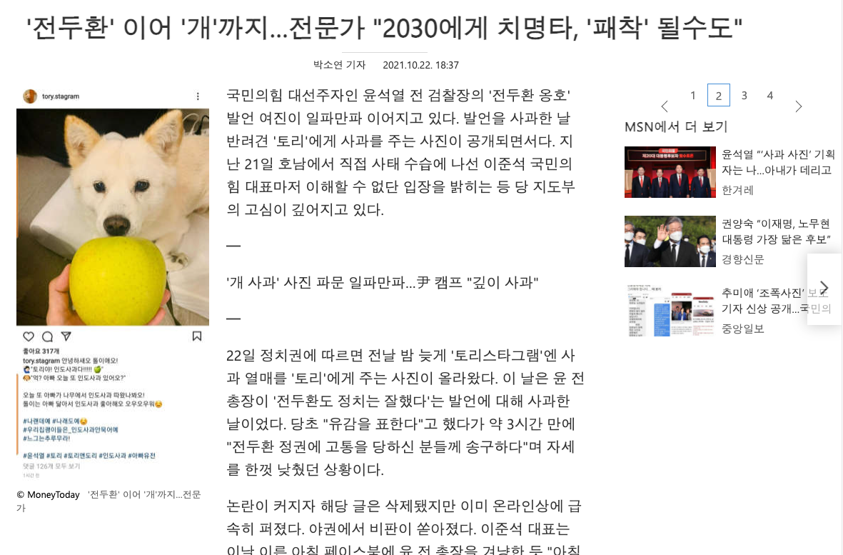 '전두환' 이어 '개'까지…전문가 "2030에게 치명타, '패착' 될수도" (msn.com)