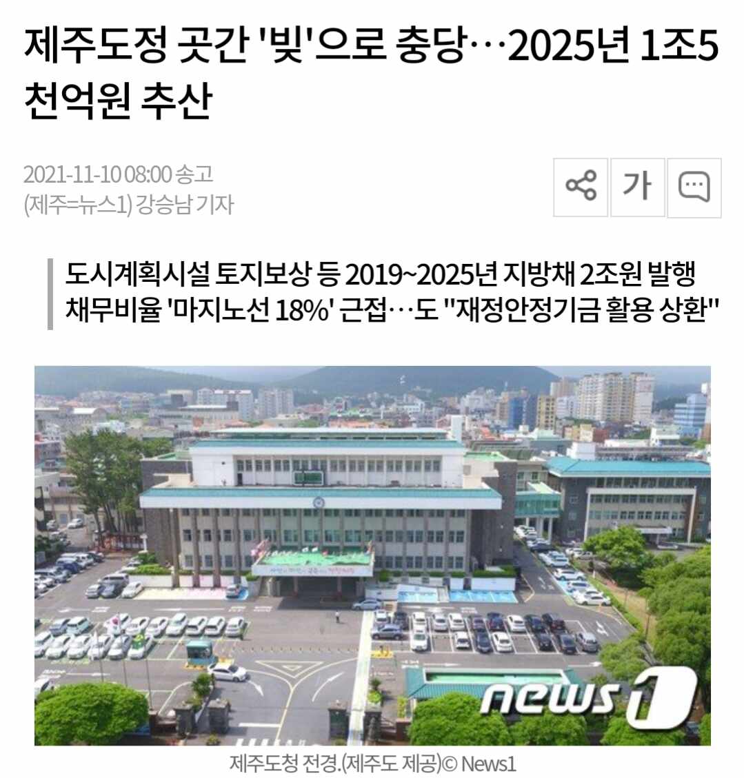 제주도의 '빚'이 2018년 3500억원에서 올해 1조원을 넘어설 것으로 예상된다.