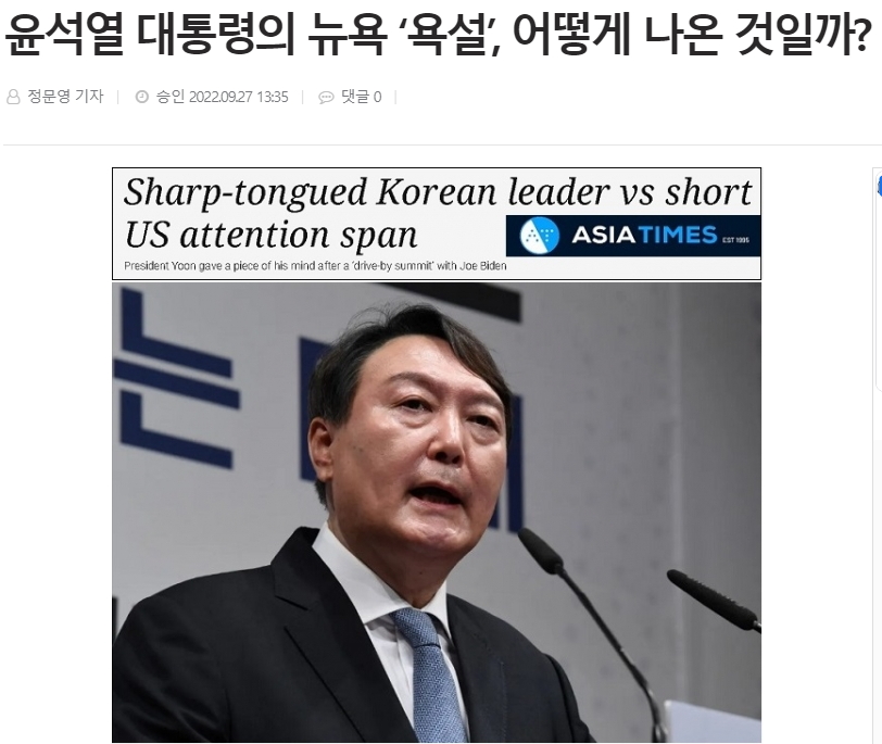 [굿모닝충청=서울 정문영 기자] 윤석열 대통령의 뉴욕 ‘욕설’은 어떻게 나온 것일까?이에 관한 주목할 만한 언론보도가 있어 소개한다. 홍콩에 본사를 두고 서울 베이징 싱가포르 뉴욕 등에