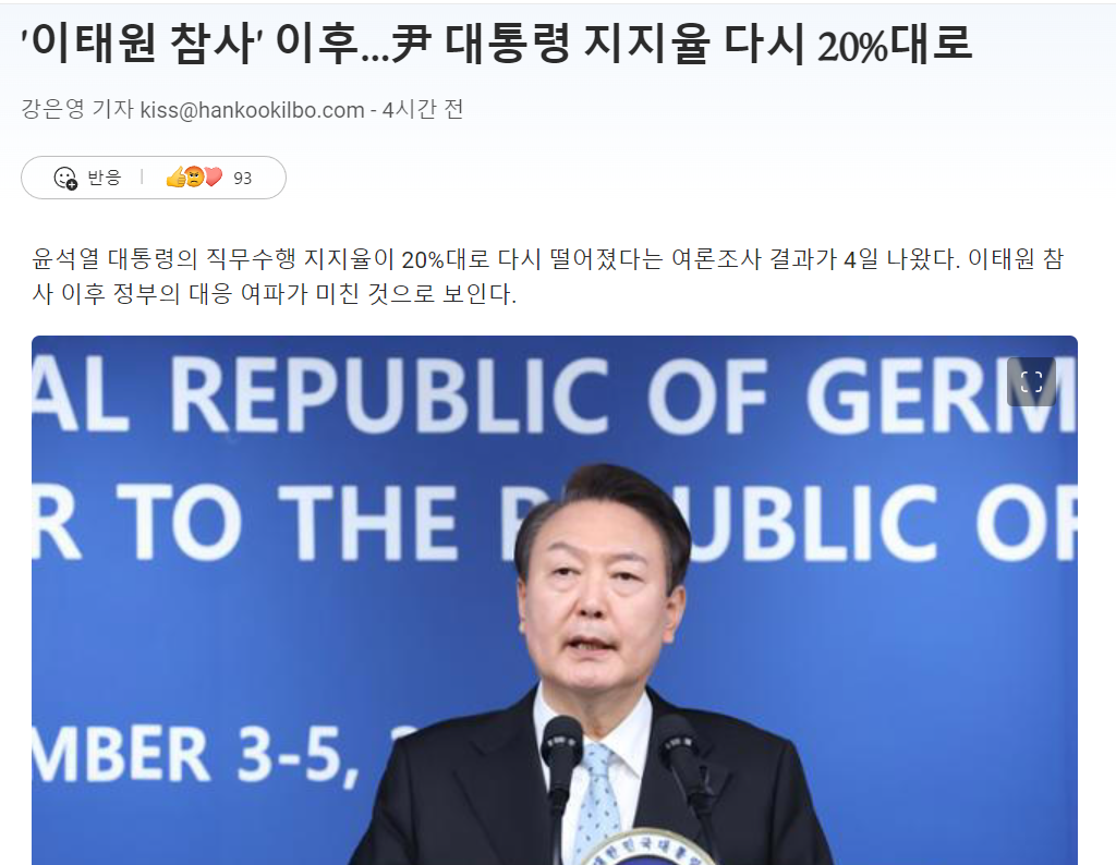 '이태원 참사' 이후...尹 대통령 지지율 다시 20%대로 News2022. 11. 4. 20:13