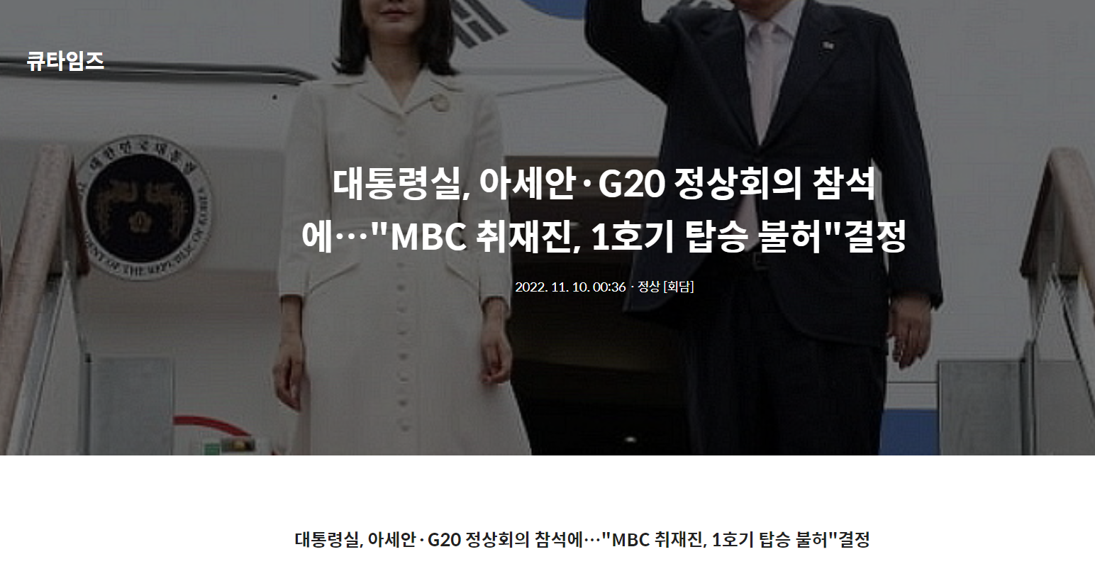 대통령실, 아세안·G20 정상회의 참석에…"MBC 취재진, 1호기 탑승 불허"결정 News2022. 11. 10. 00:42