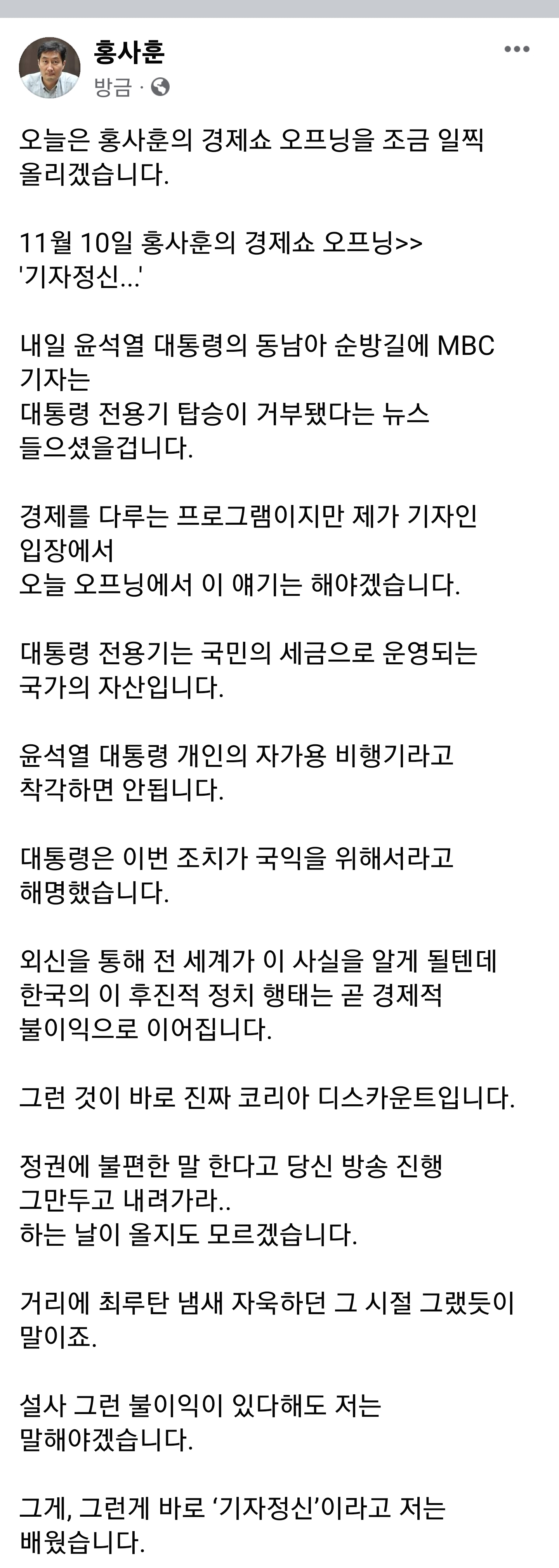 | 한겨례 대통령 전용기 탑승 거부 (0) | 2022.11.11 |
