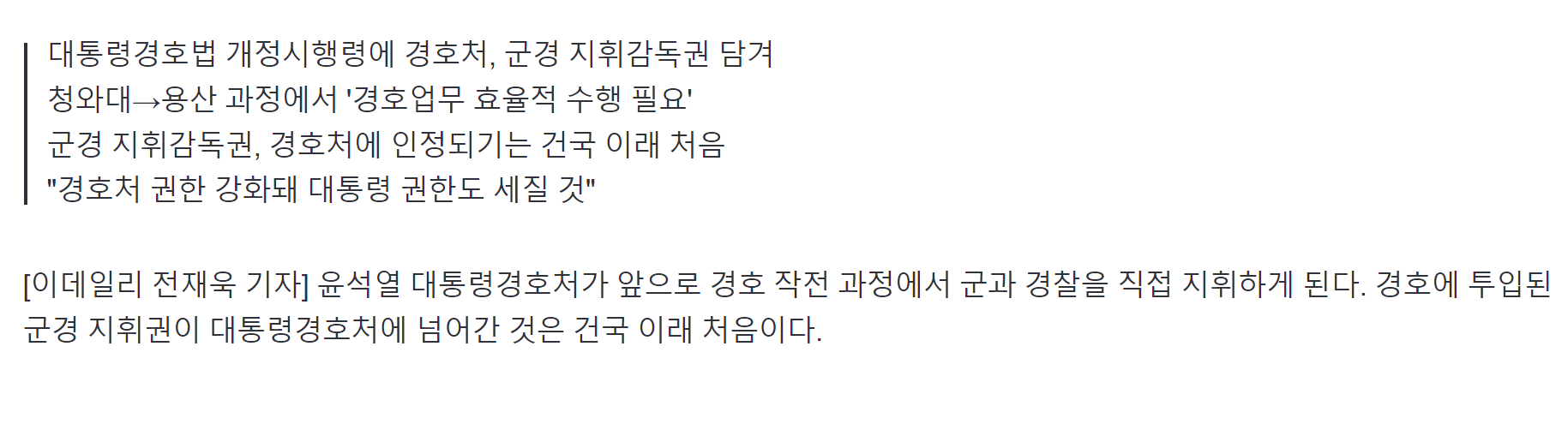[단독]대통령경호처가 군·경찰까지 지휘한다 (naver.com)