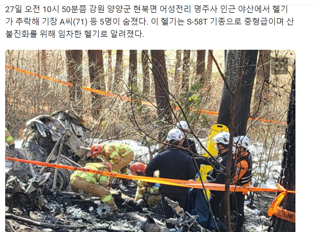 [속보]강원 양양에서 헬기 추락…5명 사망 News2022. 11. 27. 18:23