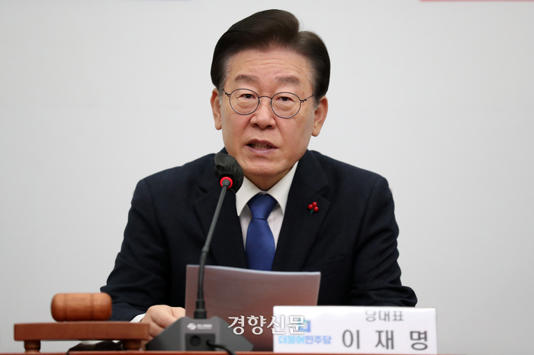 “무혐의 났던 성남FC 광고로 검찰 소환 통보” 이재명 민주당 대표가 21일 서울 여의도 국회에서 열린 최고위원회의에서 발언을 하고 있다. 박민규 선임기자 이재명 더불어민주당 대표는 22일