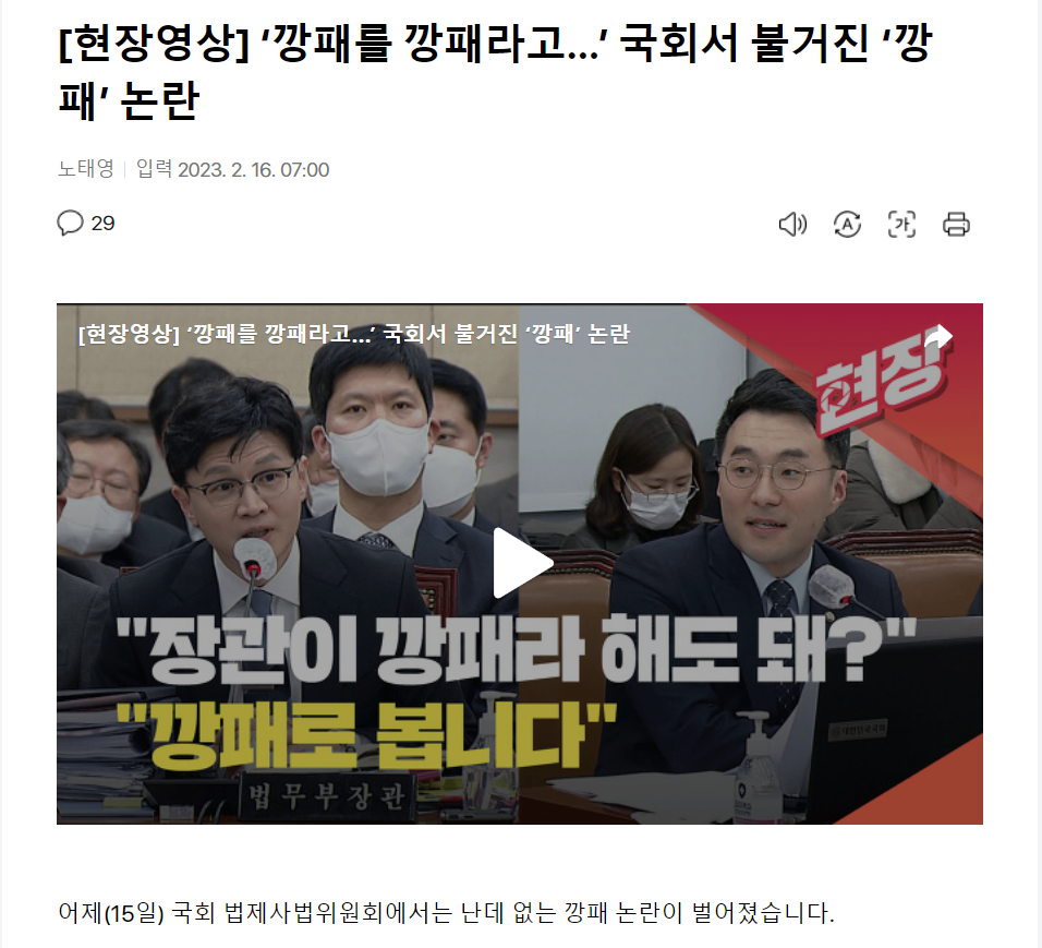 어제(15일) 국회 법제사법위원회에서는 난데 없는 깡패 논란이 벌어졌다. News2023. 2. 16. 07:55