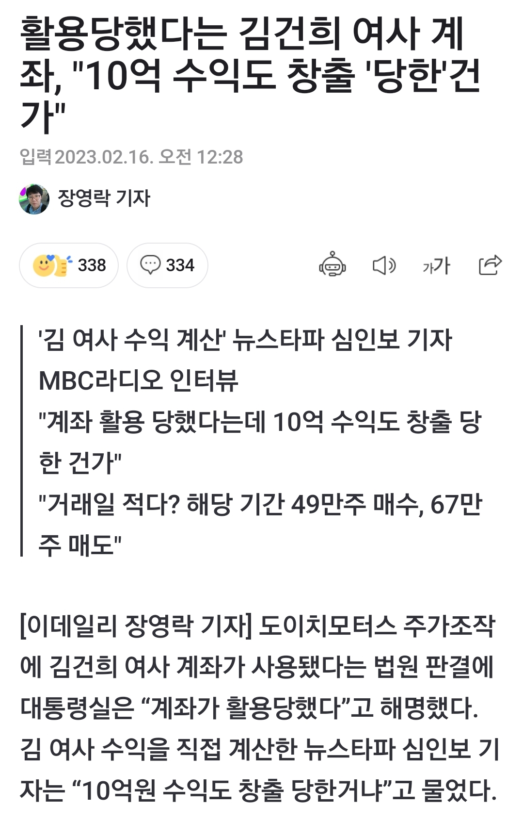 | “김건희 계좌 활용당했다” 해명에 개미투자자들 “나도 수익창출 당하고 싶다” (0) | 2023.02.17 |