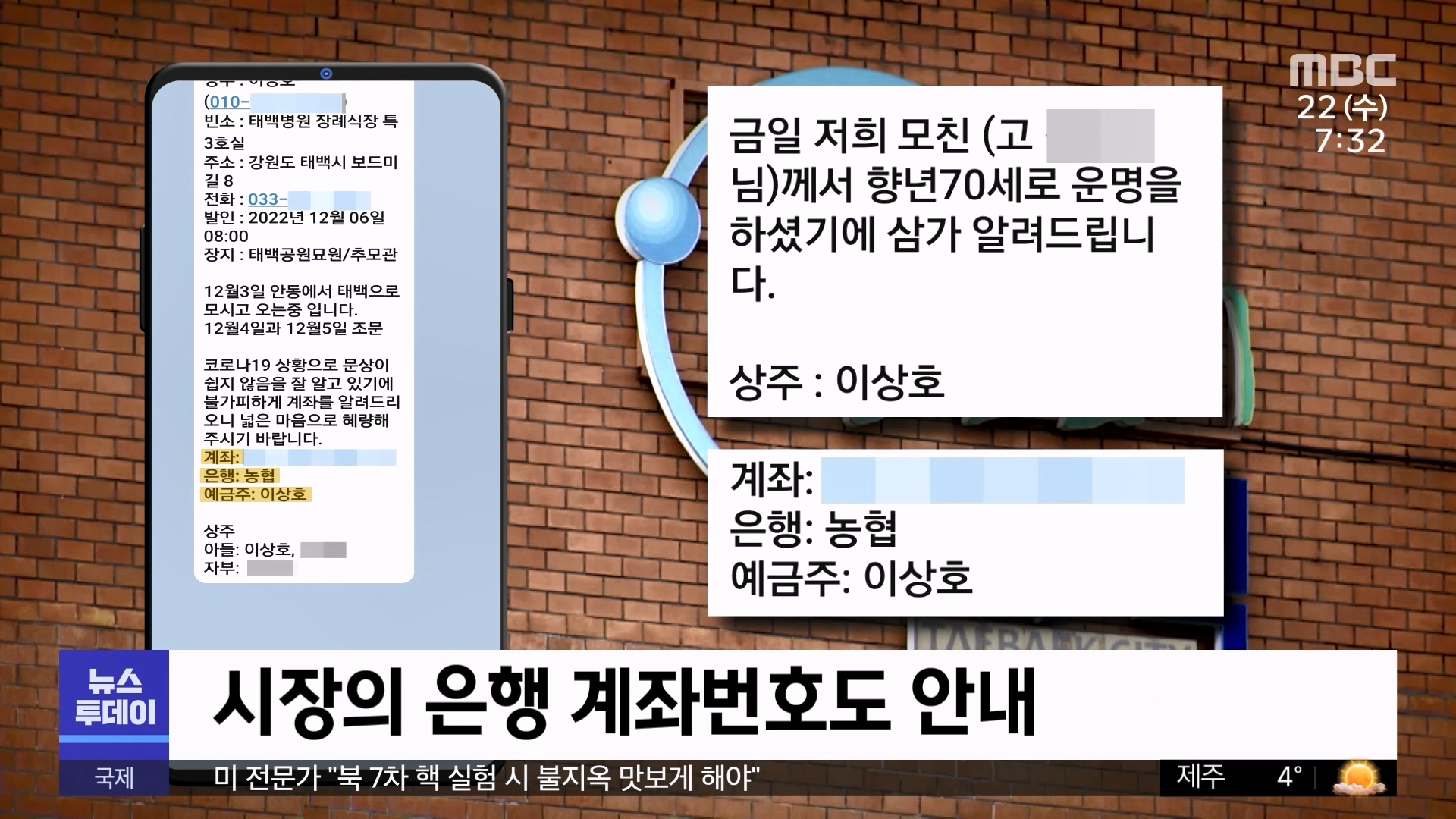 '태백시장 모친상' 알림메시지 시장의 은행 계좌번호 태백시민에게 News2023. 2. 22. 08:48
