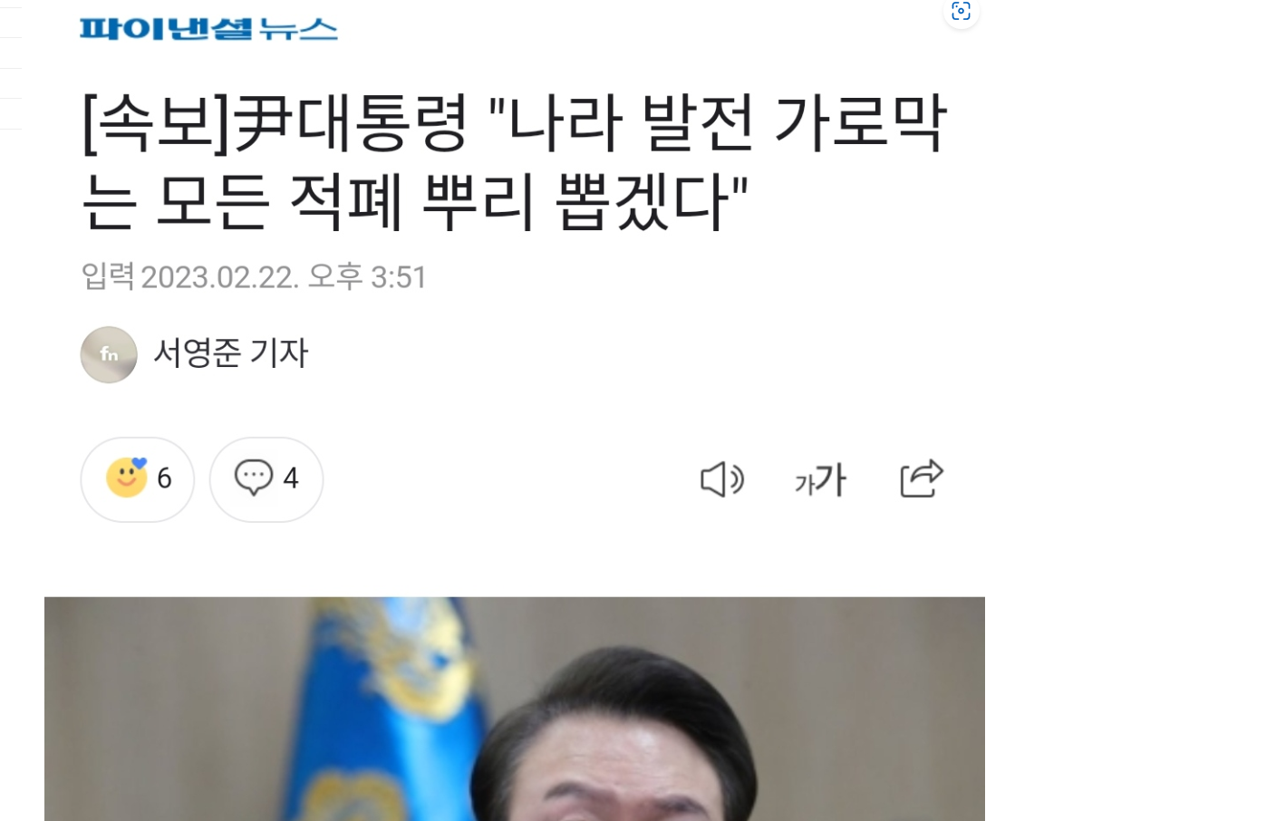 [속보]尹대통령 "나라 발전 가로막는 모든 적폐 뿌리 뽑겠다" News2023. 2. 22. 16:06
