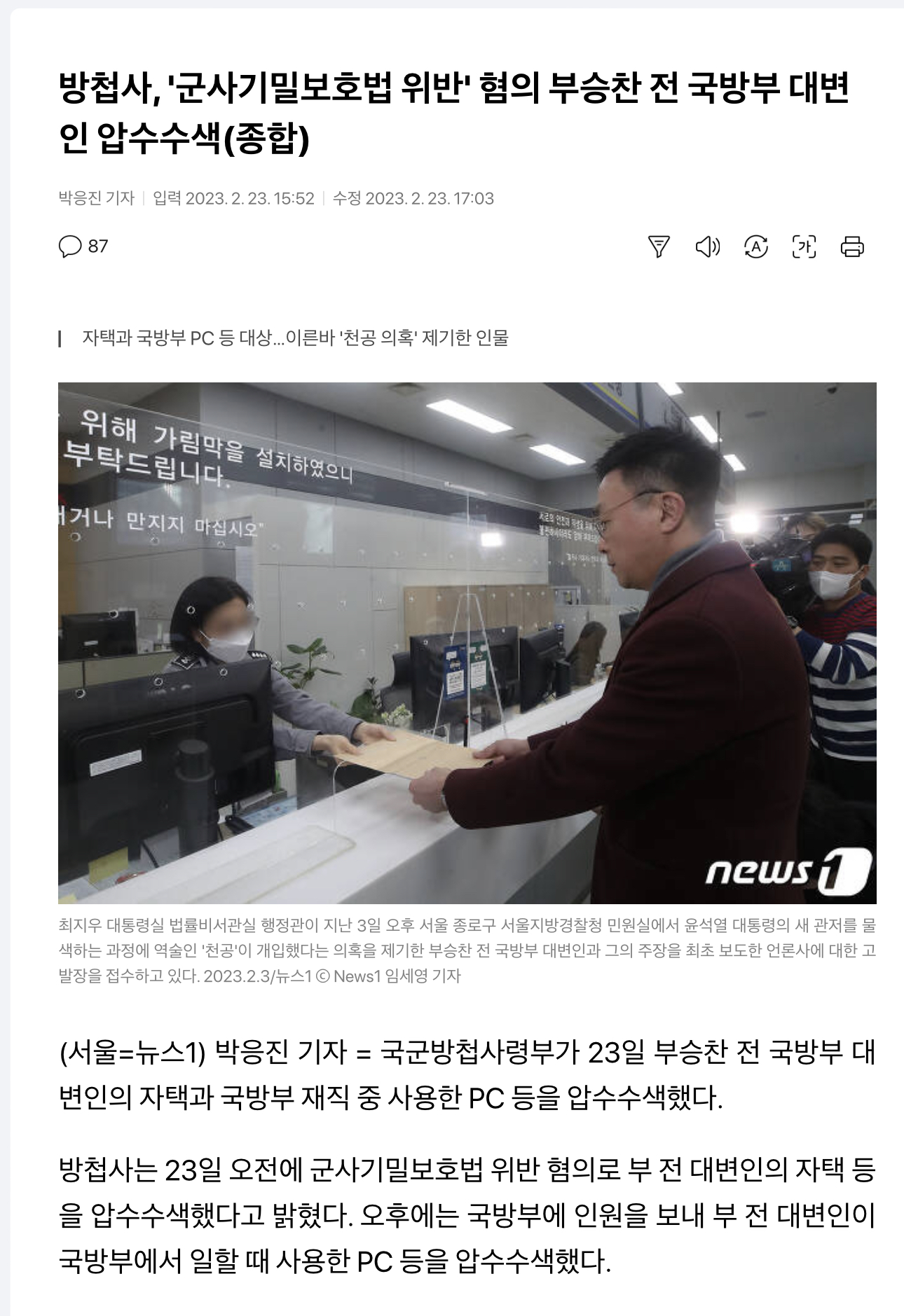 방첩사, '군사기밀보호법 위반' 혐의 부승찬 전 국방부 대변인 압수수색 News2023. 2. 23. 19:24