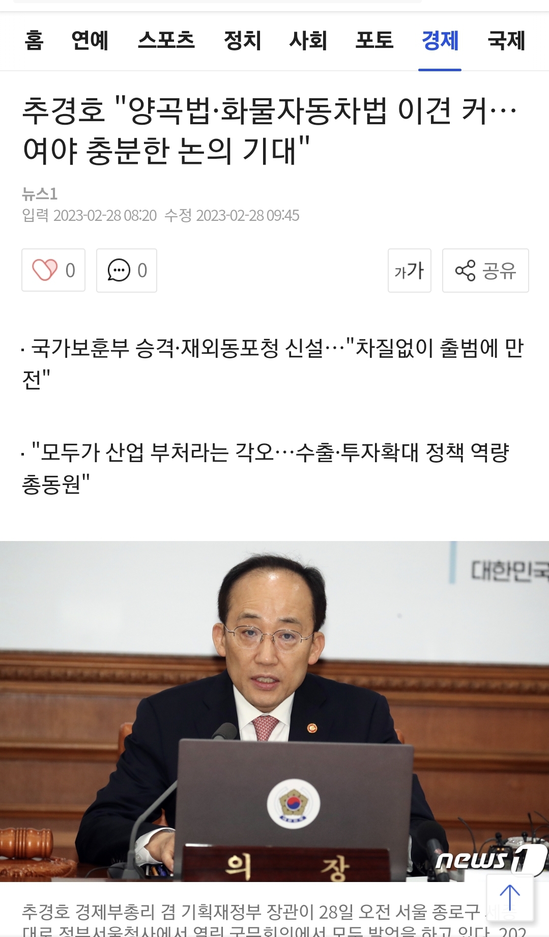 추경호 "양곡법·화물자동차법 이견 커…여야 충분한 논의 기대" News2023. 2. 28. 09:55