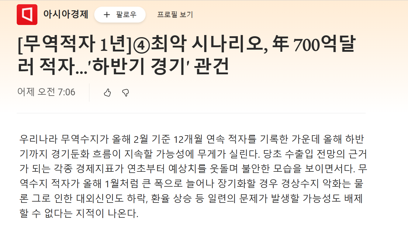 [무역적자 1년]④최악 시나리오, 年 700억달러 적자…'하반기 경기' 관건 (msn.com)