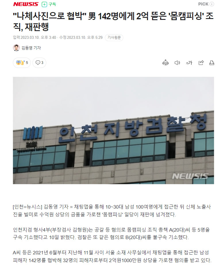 "나체사진" 협박으로 142명에게 '몸캠피싱' 조직 News2023. 3. 14. 21:17