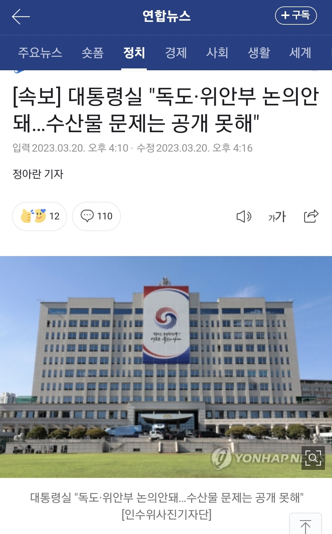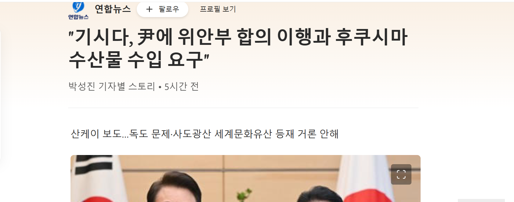 "기시다, 尹에 위안부 합의 이행과 후쿠시마 수산물 수입 요구" 그리고 대통령실 속보 News2023. 3. 20. 13:24