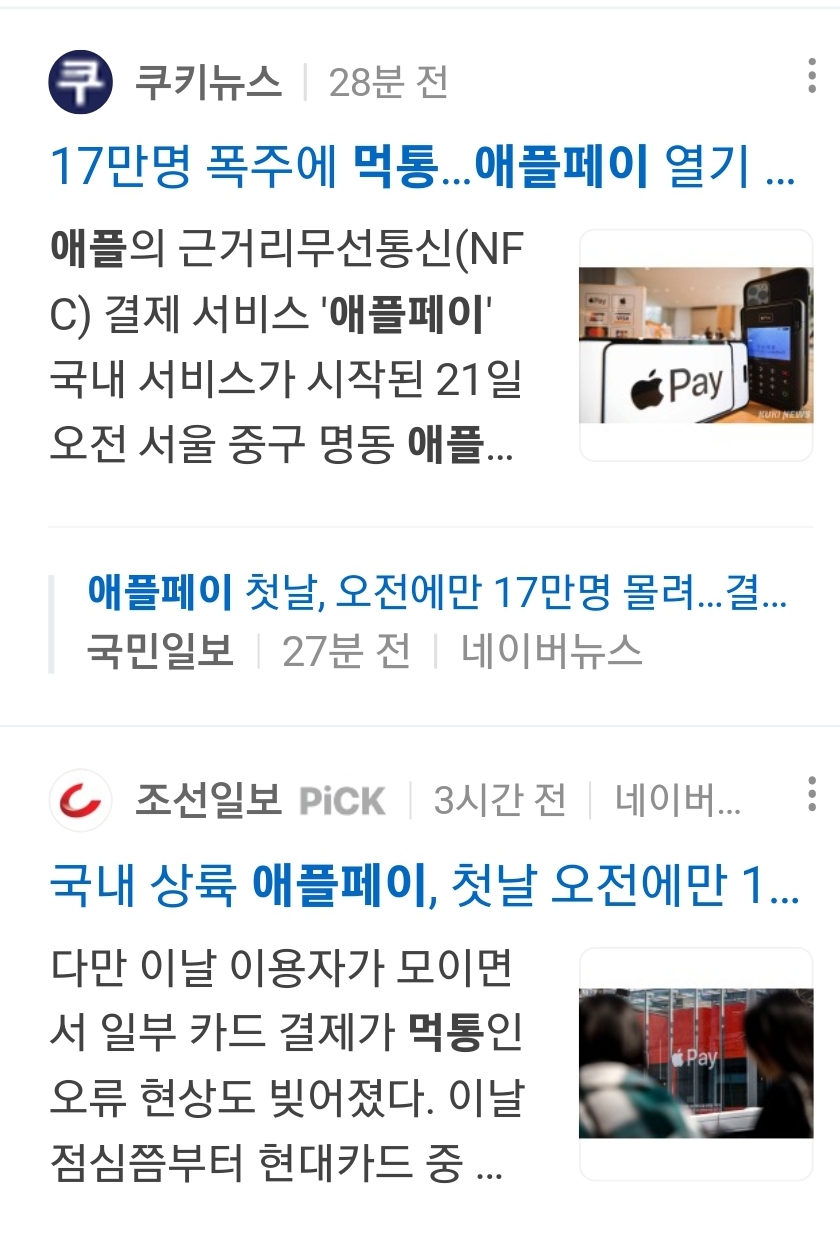 17만명 폭주에 먹통 애플페이 열기 News2023. 3. 21. 17:51