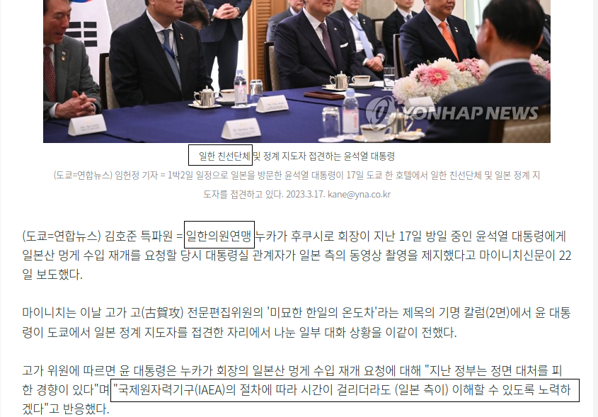 "韓대통령실, 日멍게 수입 재개 요청 대화 영상촬영 제지" News2023. 3. 23. 10:30