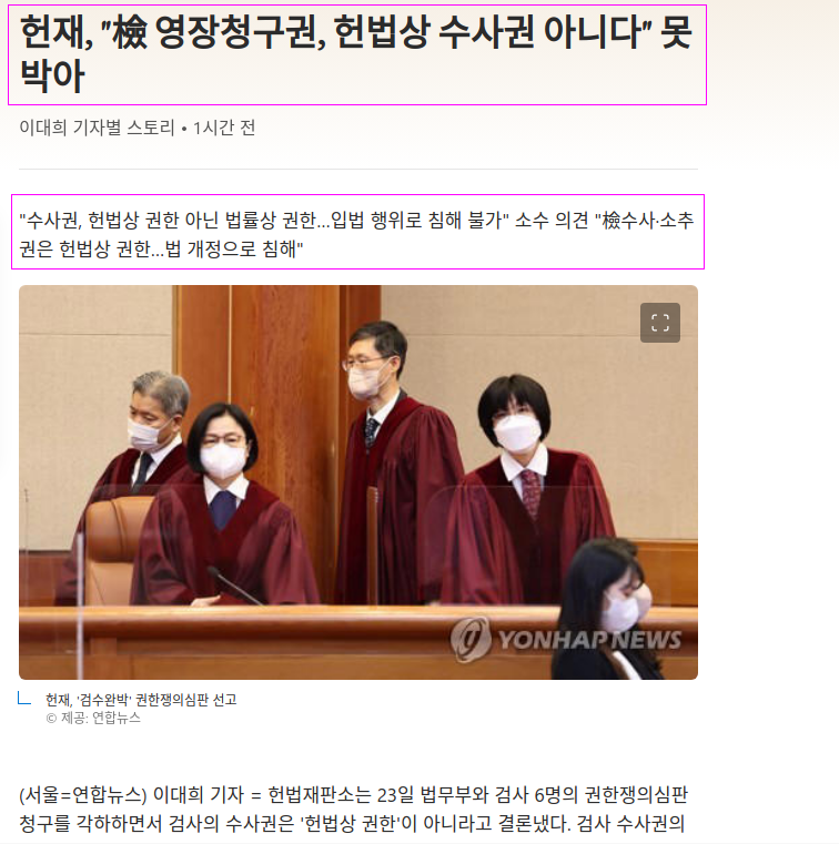 검찰개혁 법안의 적법성이 인정됐다" 일면 검수완박, 한동훈등이 재기한 권한쟁의 헌재 각하 결정 News2023. 3. 23. 21:54