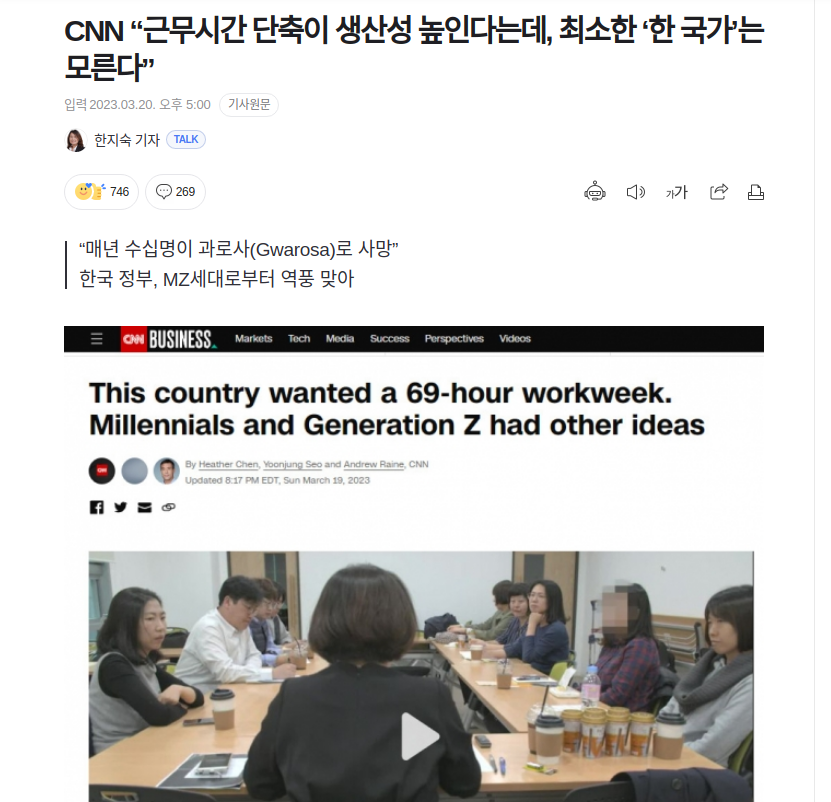 CNN “근무시간 단축이 생산성 높인다는데, 최소한 ‘한 국가’는 모른다” 쪽팔림은 누구의 몫 News2023. 3. 26. 20:24