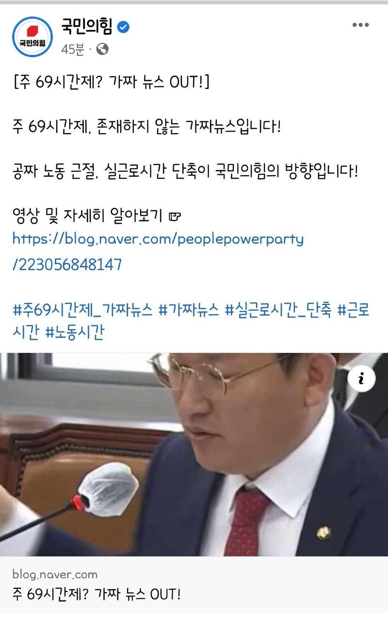 가짜 뉴스 Out! 주 69시간제 국민의 힘,, 혼란하다. 혼란해