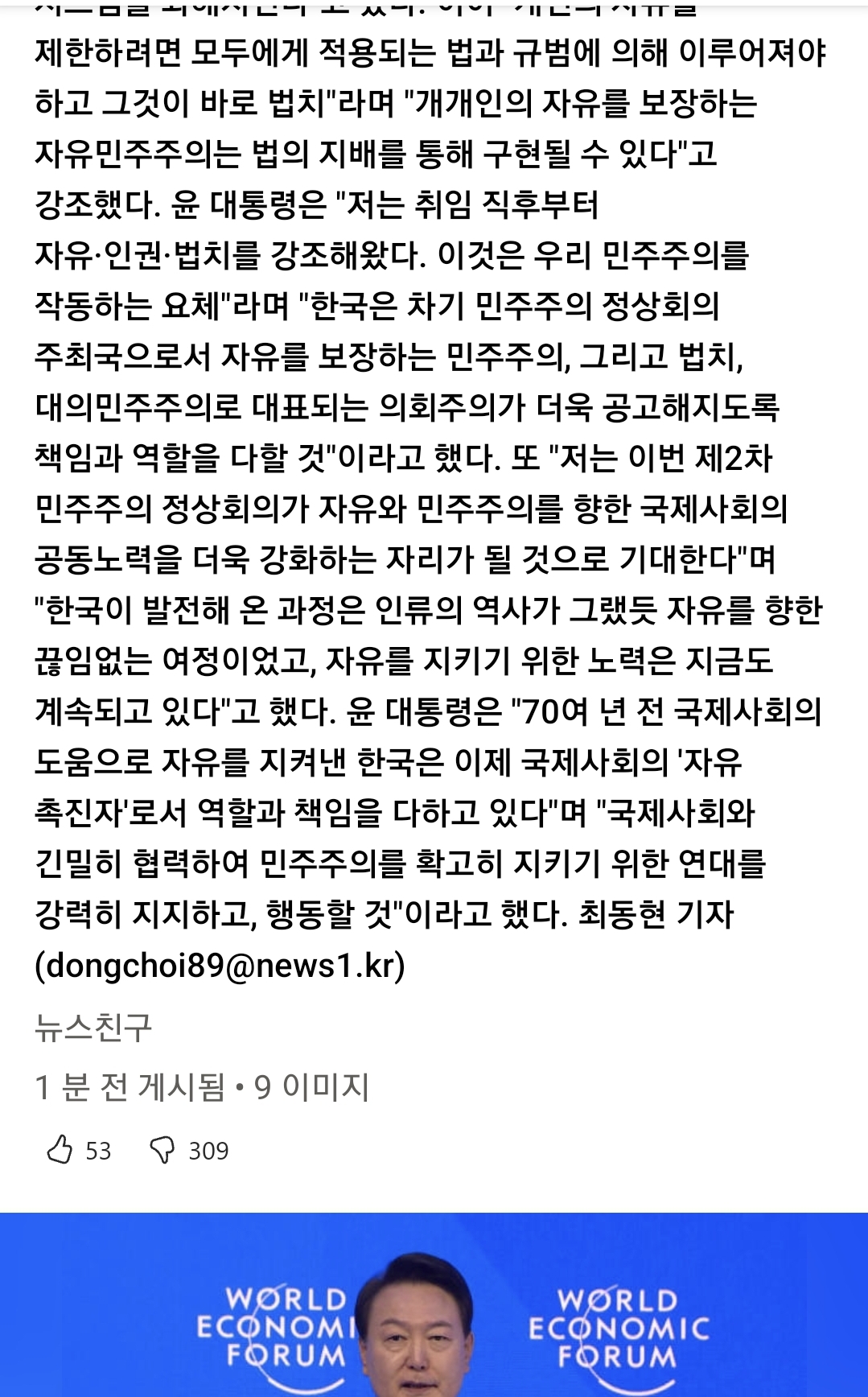 尹 특별연설 "가짜민주주의 전세계 확산…" News2023. 3. 30. 13:20