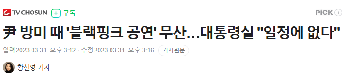 방미 블랙핑크 공연 무산 News2023. 3. 31. 16:18