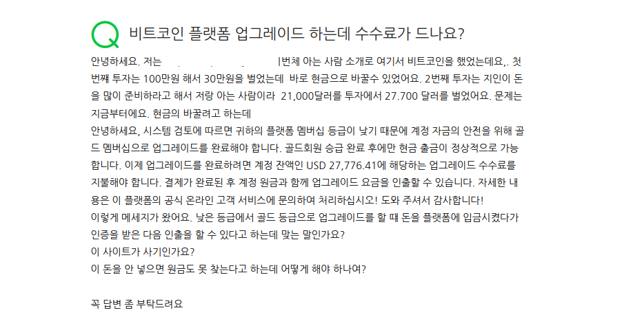 비트코인 플랫폼 업그레이드 하는데 수수료가 드나요? 가상화폐 사기 News2023. 4. 6. 07:13