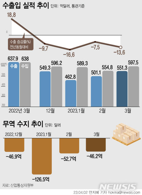 13개월째 무역적자…한국경제 어디로[그래픽 경제] 2023년 4월 News2023. 4. 8. 03:46