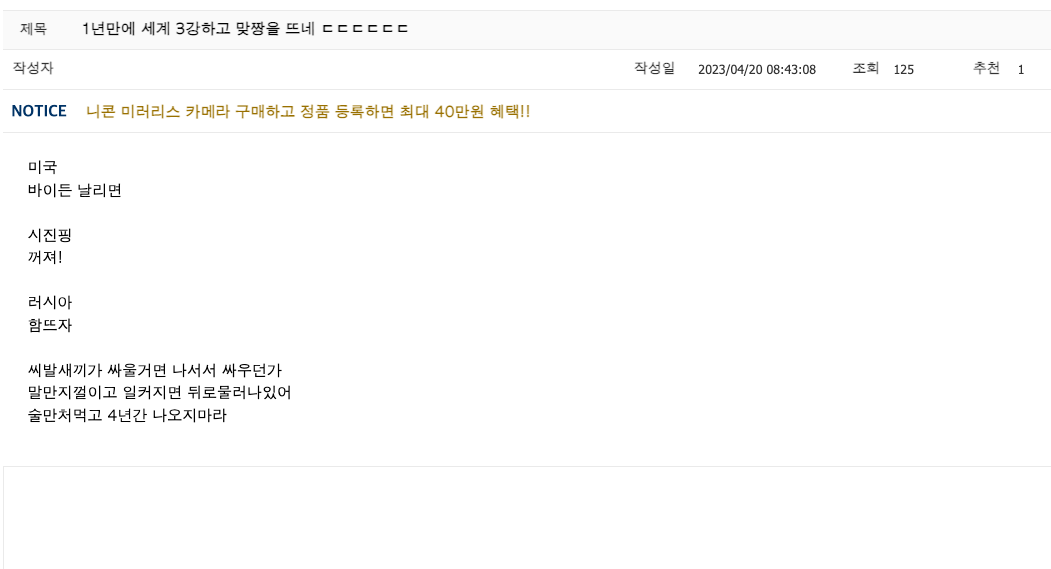 1년만에 세계 3강하고 맞짱을 뜨는 윤석열을 보유한 대한민국 News2023. 4. 20. 08:53