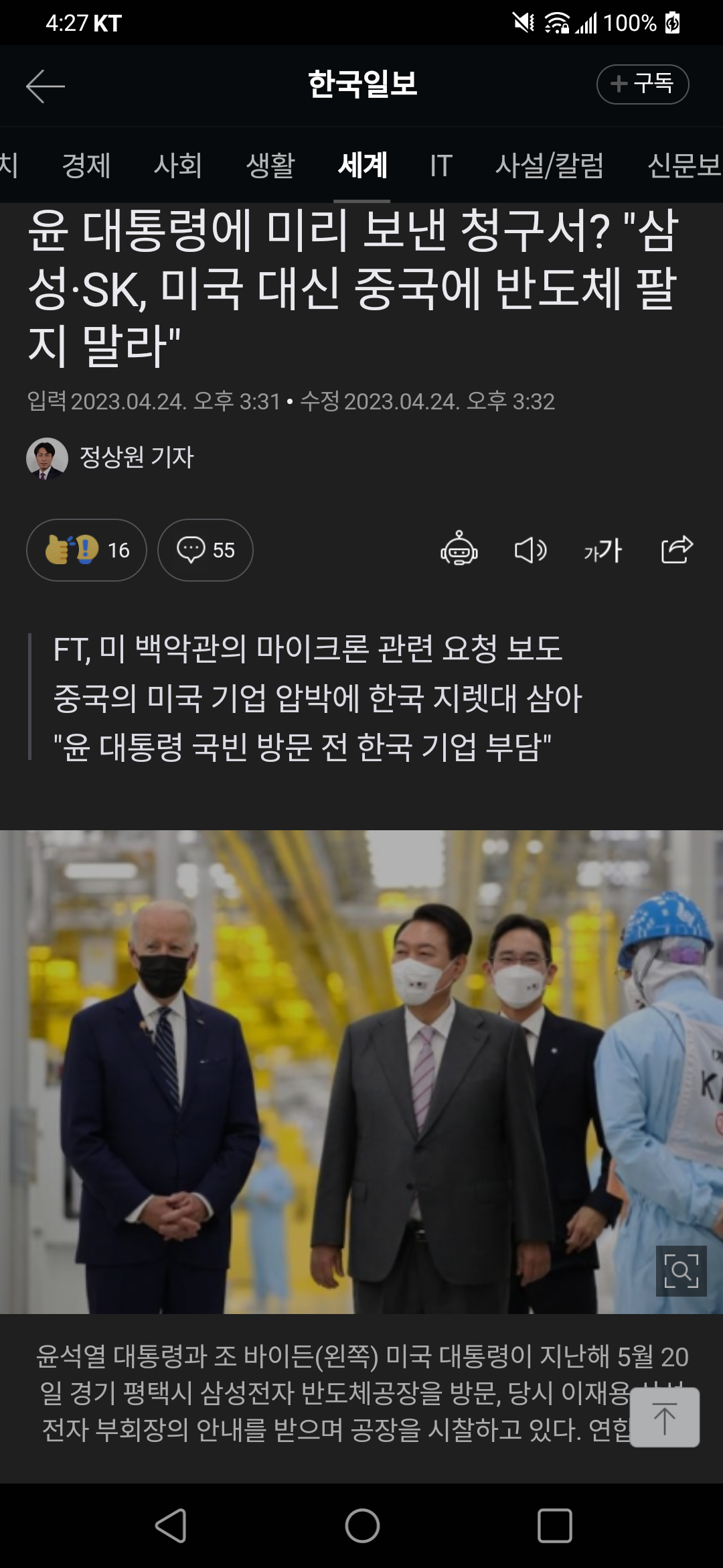 ㅂ ㅅ 美 "韓, 中 반도체 부족 메우지 말라" 그냥 내려와 새벽 2시에도 News2023. 4. 24. 21:19