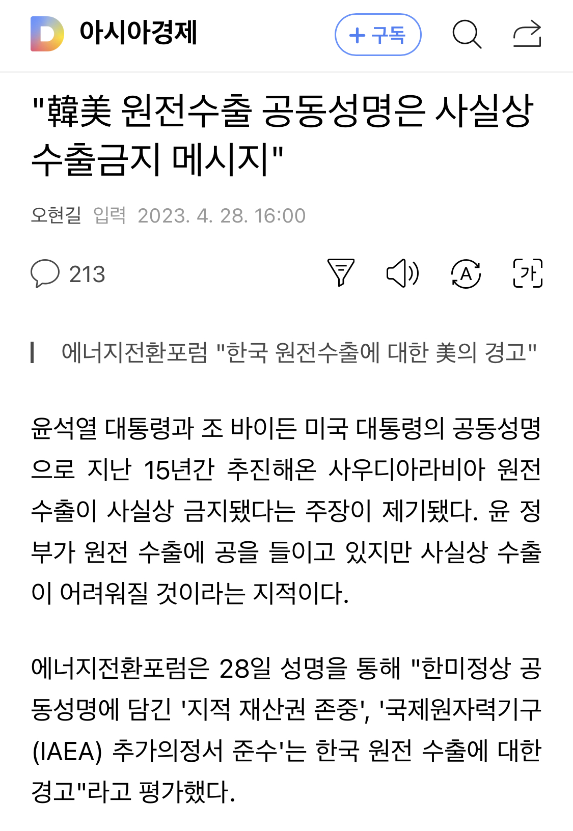 1호 영업사원의 또다른 쾌거, 원전수출 공동성명 News2023. 4. 28. 19:51