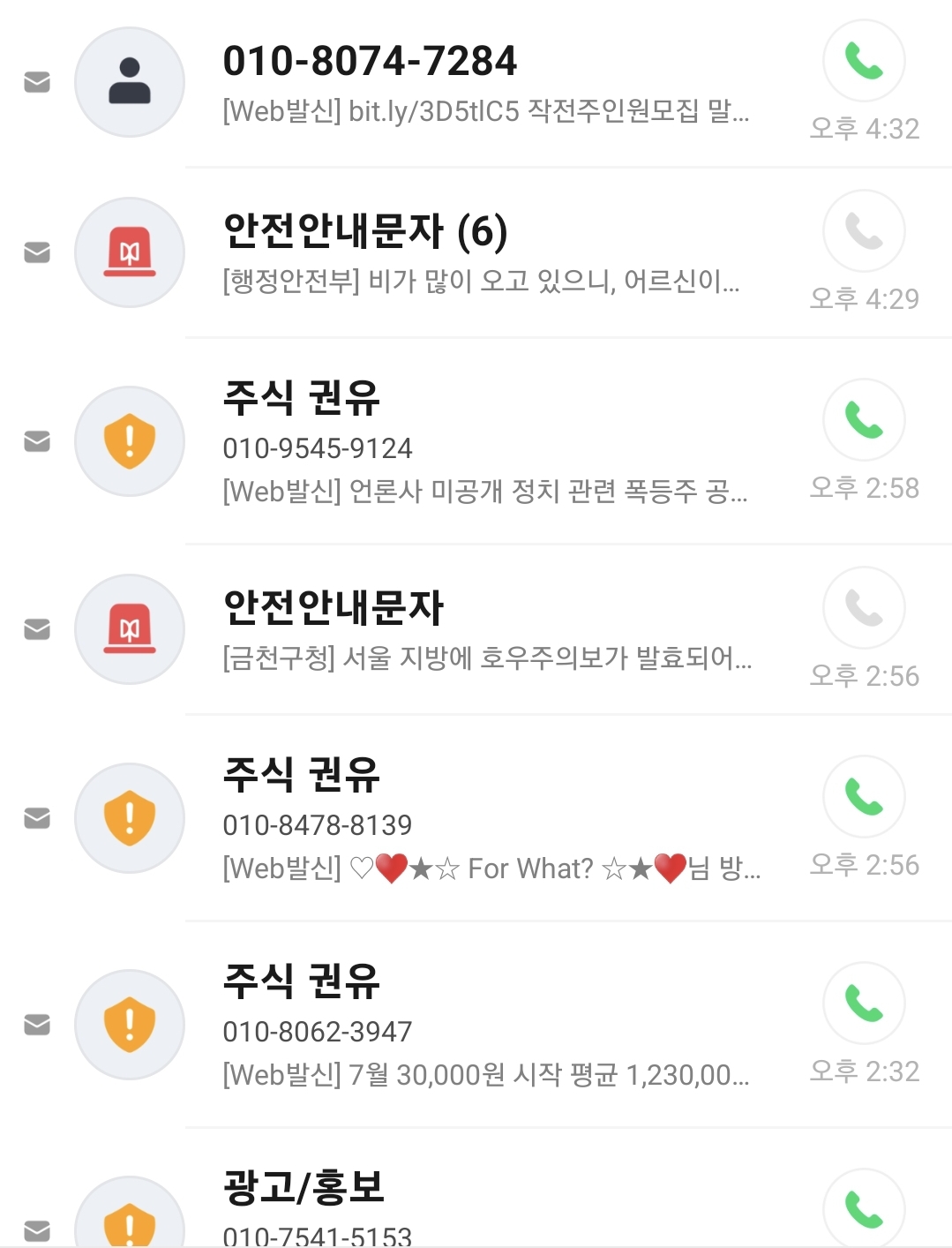 심지어 주말이고 할거 없이 무시무시한 스팸문자를 각오해야 한다.