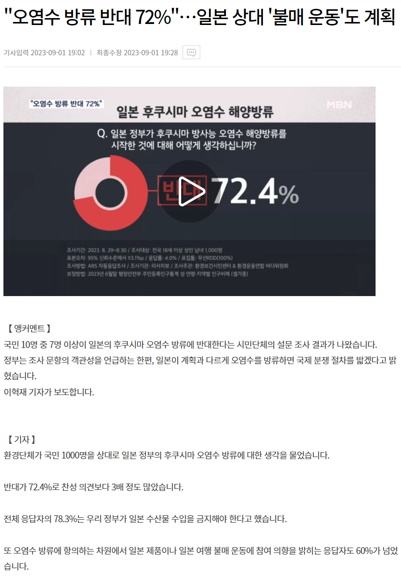 오염수 방류 반대 72% News2023. 9. 4. 19:42