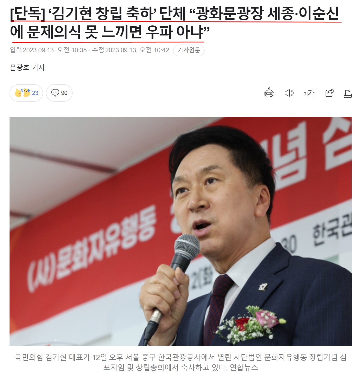 창립 김기현 축하단체 광화문 광장 세종 이순신에 문제 의식 News2023. 9. 13. 14:08