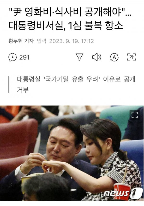 "尹 영화비·식사비 공개해야"…대통령비서실, 1심 불복 항소 News2023. 9. 20. 09:47