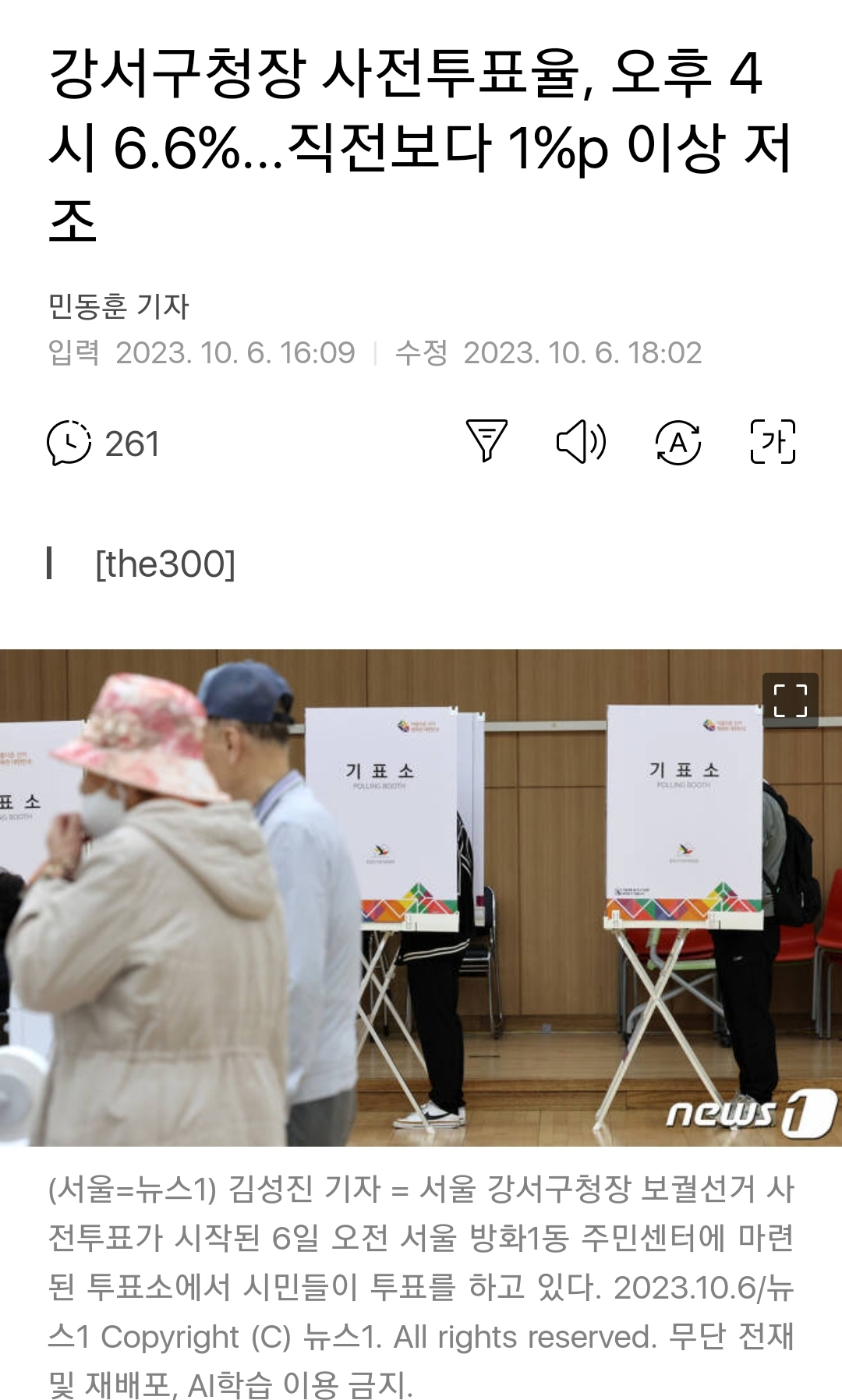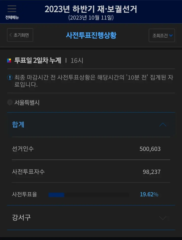 강서구청장 사전 투표율 -2023년 10월 6, 7 일 News2023. 10. 6. 18:45