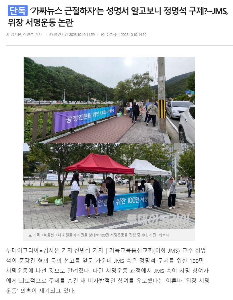 가짜 뉴스 근절 서명 운동 -JMS 위장 News2023. 10. 10. 15:20