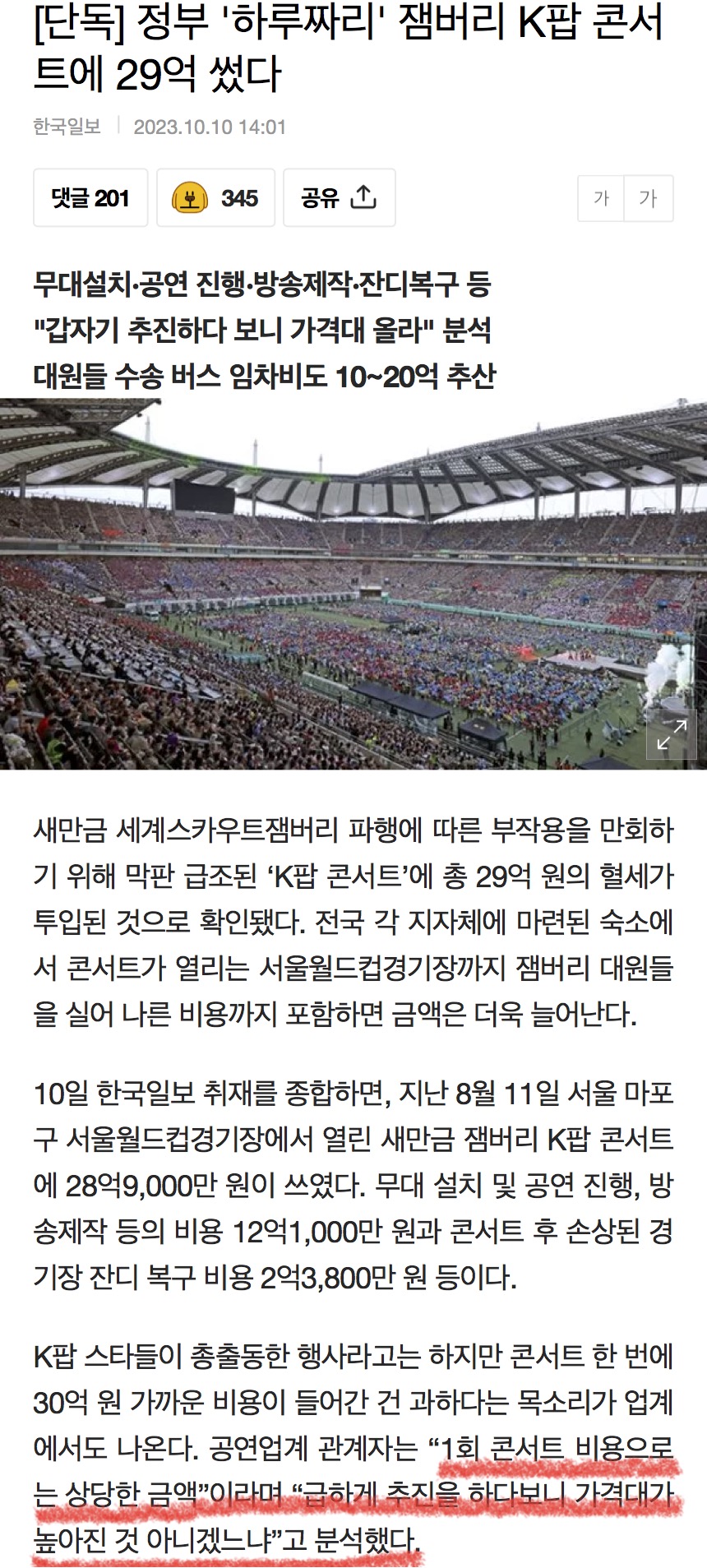 잼버리 콘서트 비용 News2023. 10. 10. 17:29