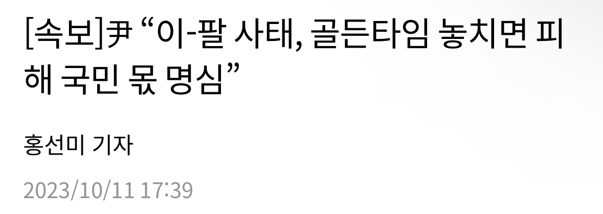 [속보]尹 “이-팔 사태, 골든타임 놓치면 피해 국민 몫 명심”