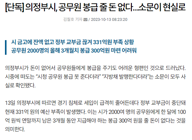 의정부시 공무원 월급 줄 돈 없다. 진실게임 News2023. 10. 13. 12:07