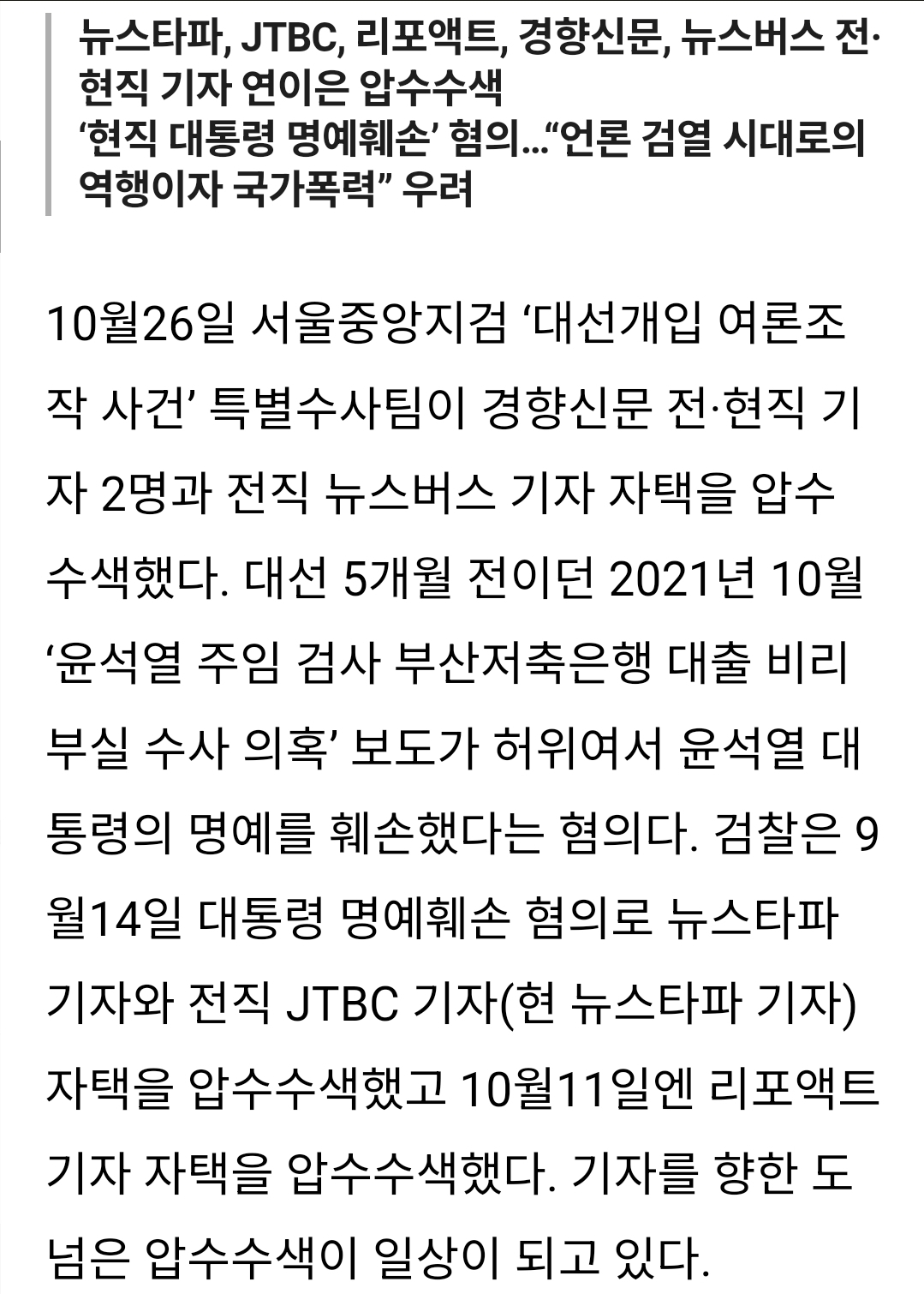 | 윤석열 명예훼손 또 압수수색, 폭주하는 언론탄압 (0) | 2023.10.28 |