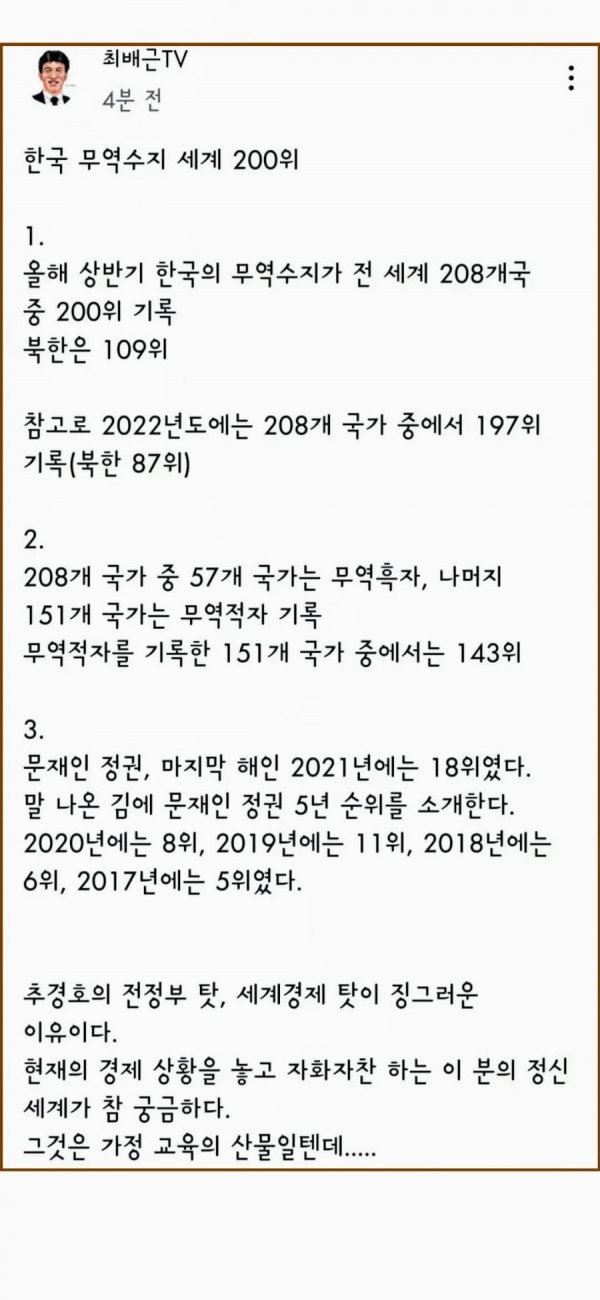 한국 무역 수지 세계 200 위 무능한 잡것들은 또 나간댄다. News2023. 11. 19. 12:12