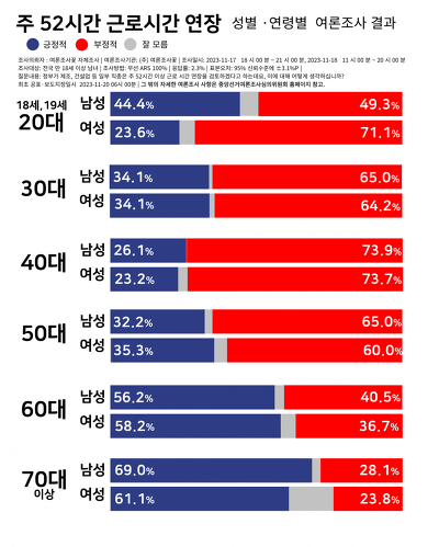 주52시간 근로시간 연장에 대한 세대별 찬반 2023년 11월 News2023. 11. 22. 14:54