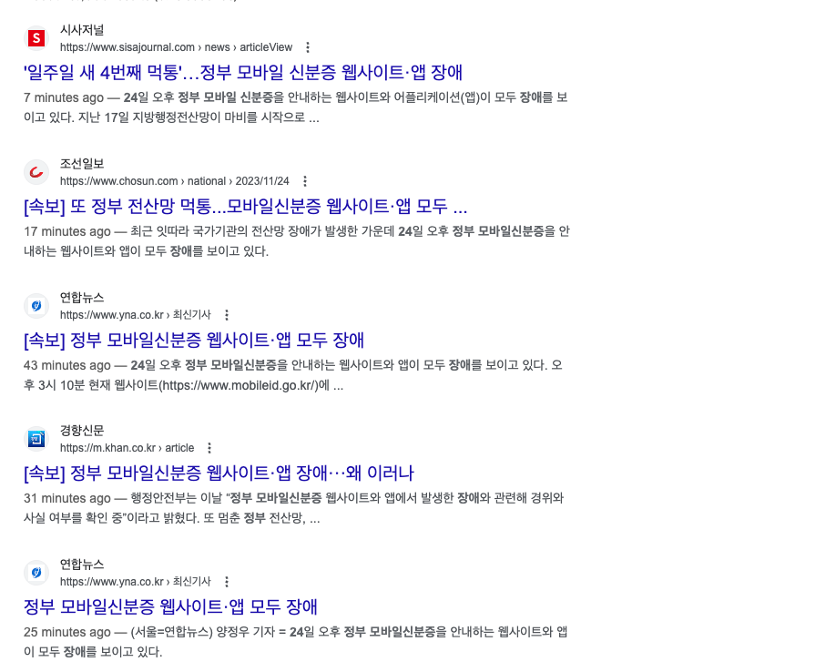 [속보] 정부 모바일신분증 웹사이트·앱 모두 장애 - 2023년 11월 News2023. 11. 24. 15:52