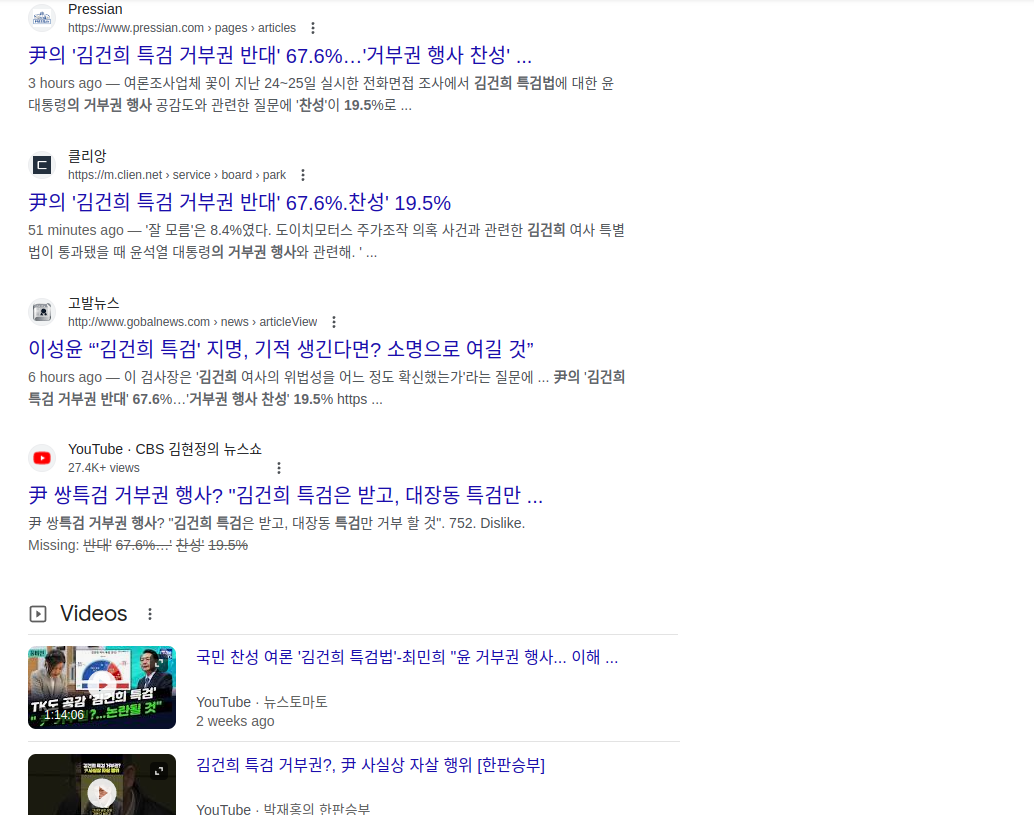 압도적 尹의 '김건희 특검 거부권 반대' 67.6%…'거부권 행사 찬성' 19.5% News2023. 11. 27. 17:02