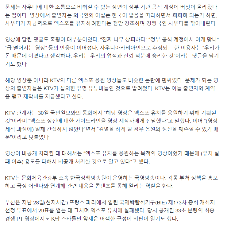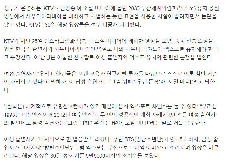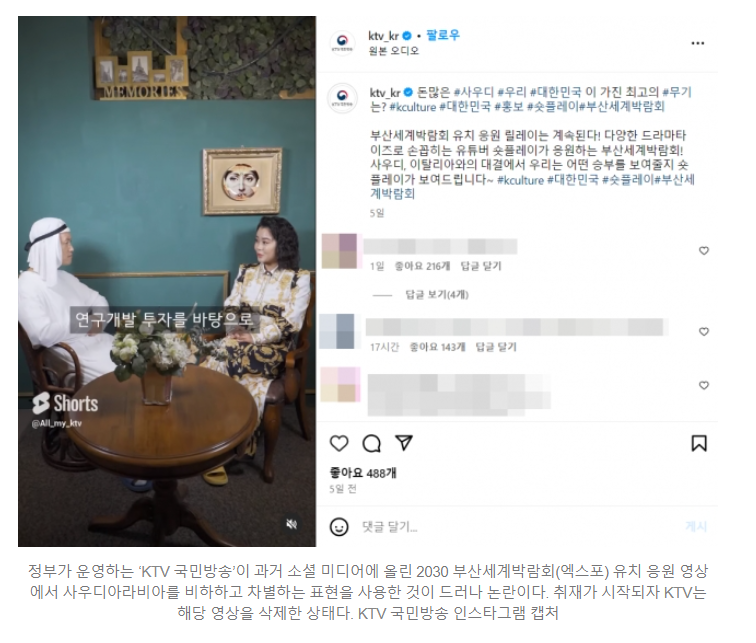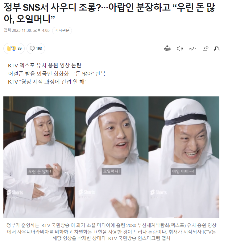 정부 SNS서 사우디 조롱?아랍인 분장하고 “우린 돈 많아, 오일머니” News2023. 11. 30. 18:38