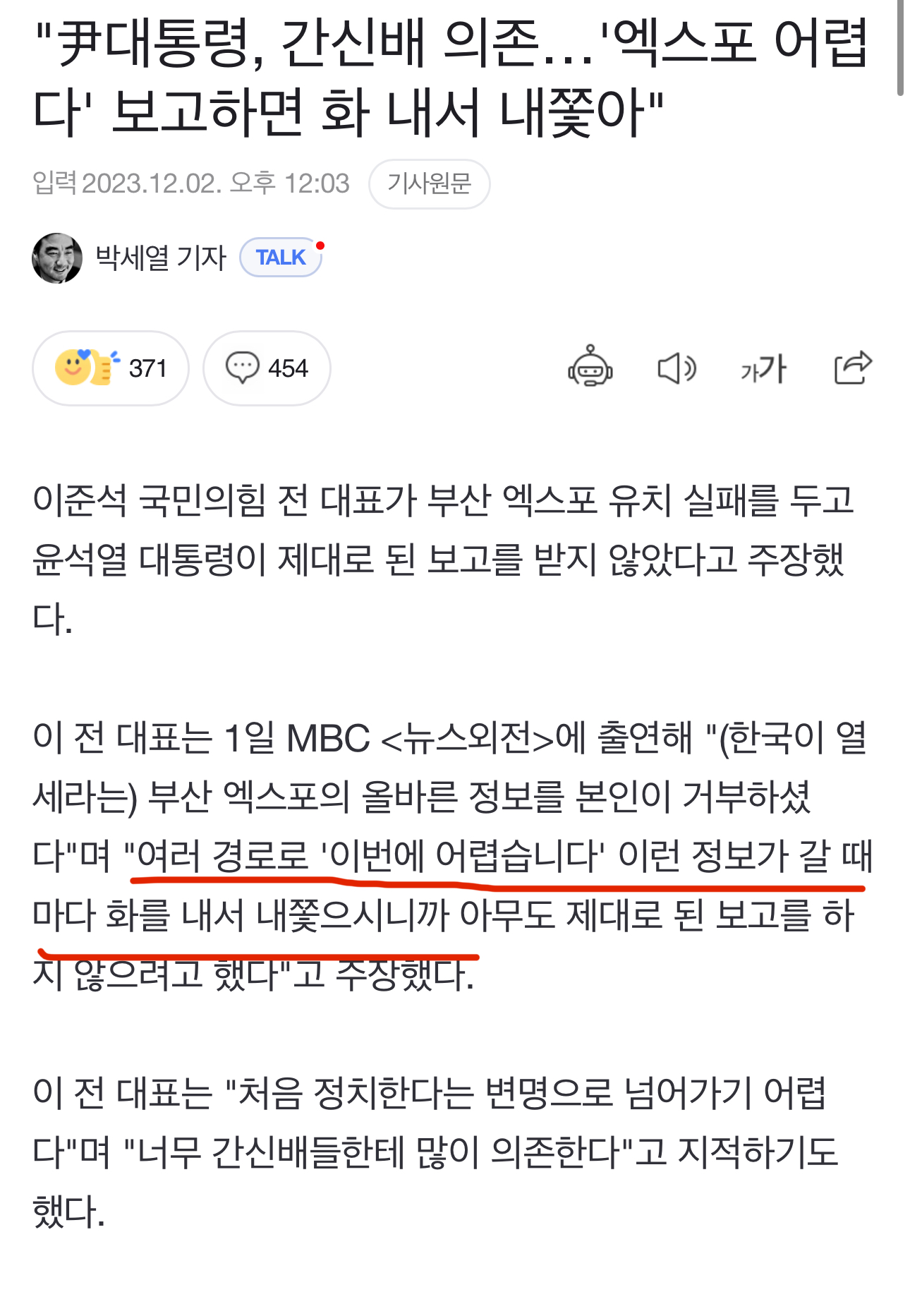 | [속보]이동관 사의 표명? 2023년 12월 (0) | 2023.12.01 |