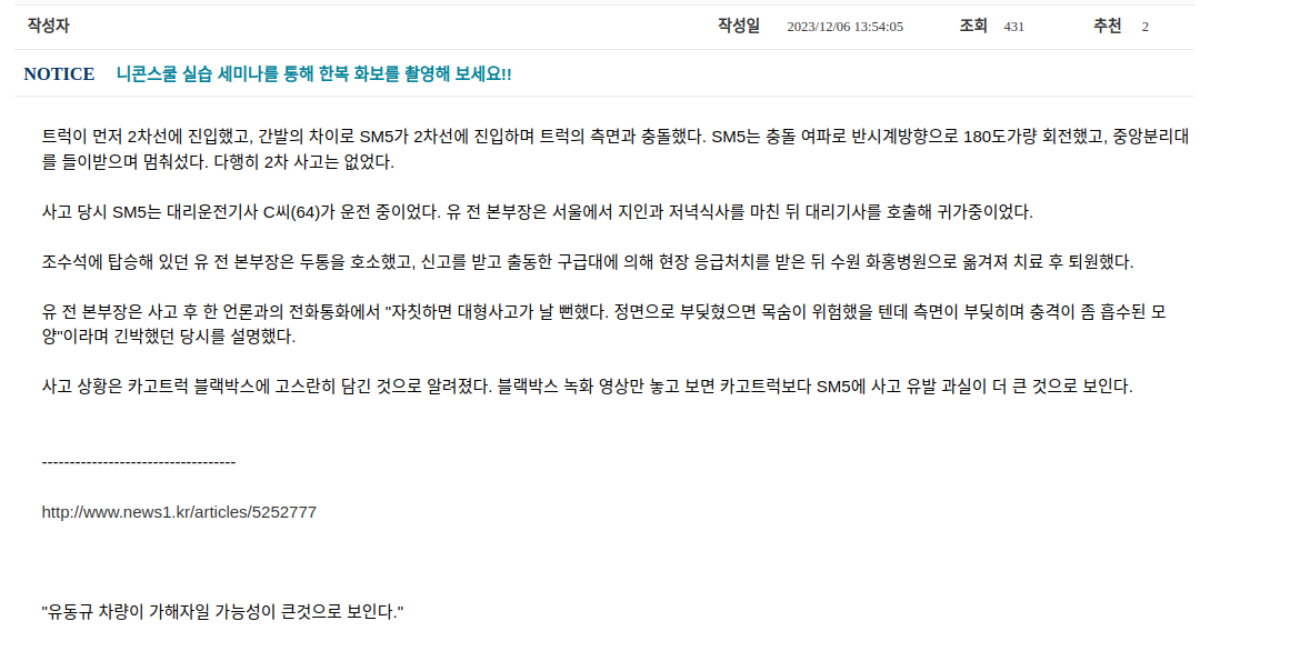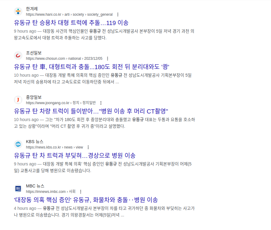 유동규 탄 車, 대형트럭과 충돌...180도 회전 뒤 분리대와도 '쾅' News2023. 12. 6. 10:09