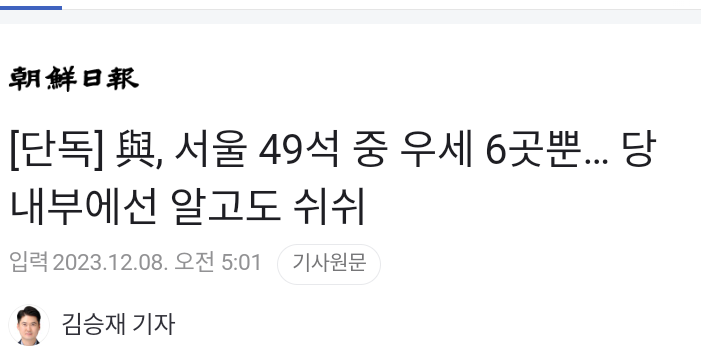 [단독] 與, 서울 49석 중 우세 6곳뿐… 당 내부에선 알고도 쉬쉬 2023년 12월 News2023. 12. 8. 06:59