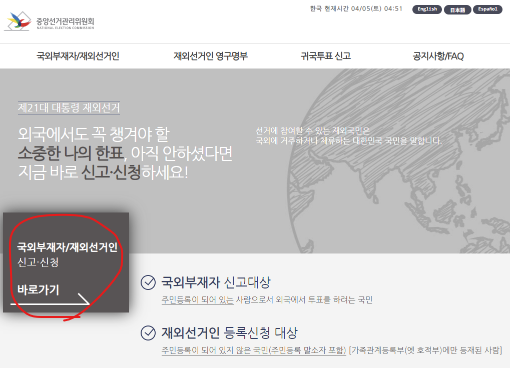 조기대선> 대통령 선거 투표할 해외 거주자 분들, 지금 바로 등록하세요.